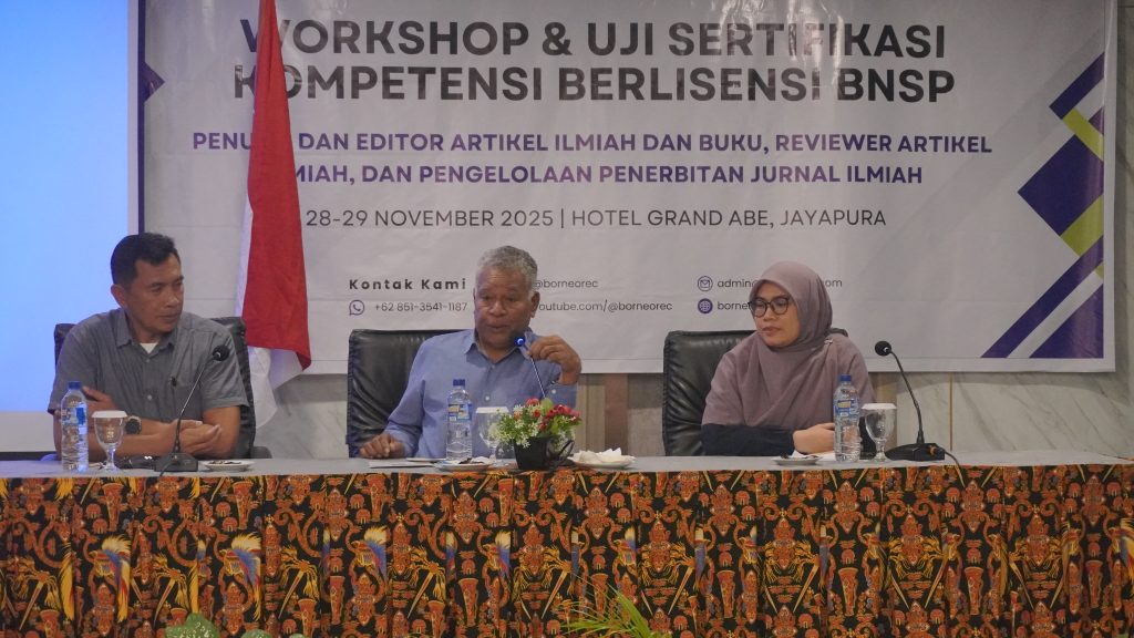 Fakultas Keguruan dan Ilmu Pendidikan Universitas Cenderawasih (FKIP UNCEN) bekerja sama dengan Borneo Riset Edukasi menyelenggarakan Workshop dan Uji Sertifikasi Kompetensi Berlisensi BNSP. Kegiatan ini berlangsung selama dua hari, Jumat–Sabtu, 28–29 November 2025, bertempat di Hotel Grand Abe, Kota Jayapura.